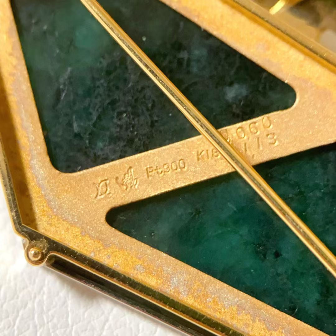K18 brooch designer NOBUKO ISHIKAWA Sapphire 1.13ct, Diamond 0.6ct 39.5g